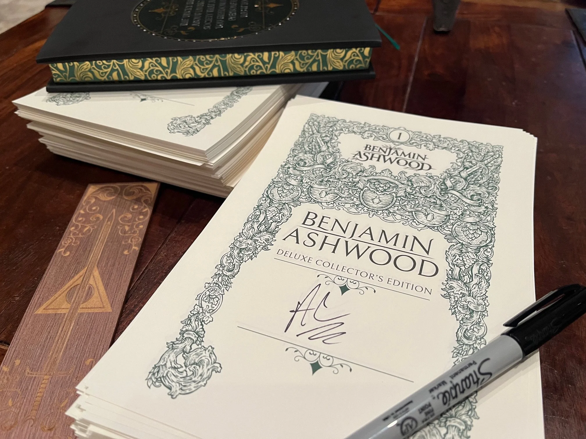 I won’t be long now until backers have the Benjamin Ashwood Collector’s Edition in hand! It turned out even better than I could have expected, so thank you so much to everyone who supported bringing this to life. My first book ever, in a volume that does it justice! This is what authors dream about right here.